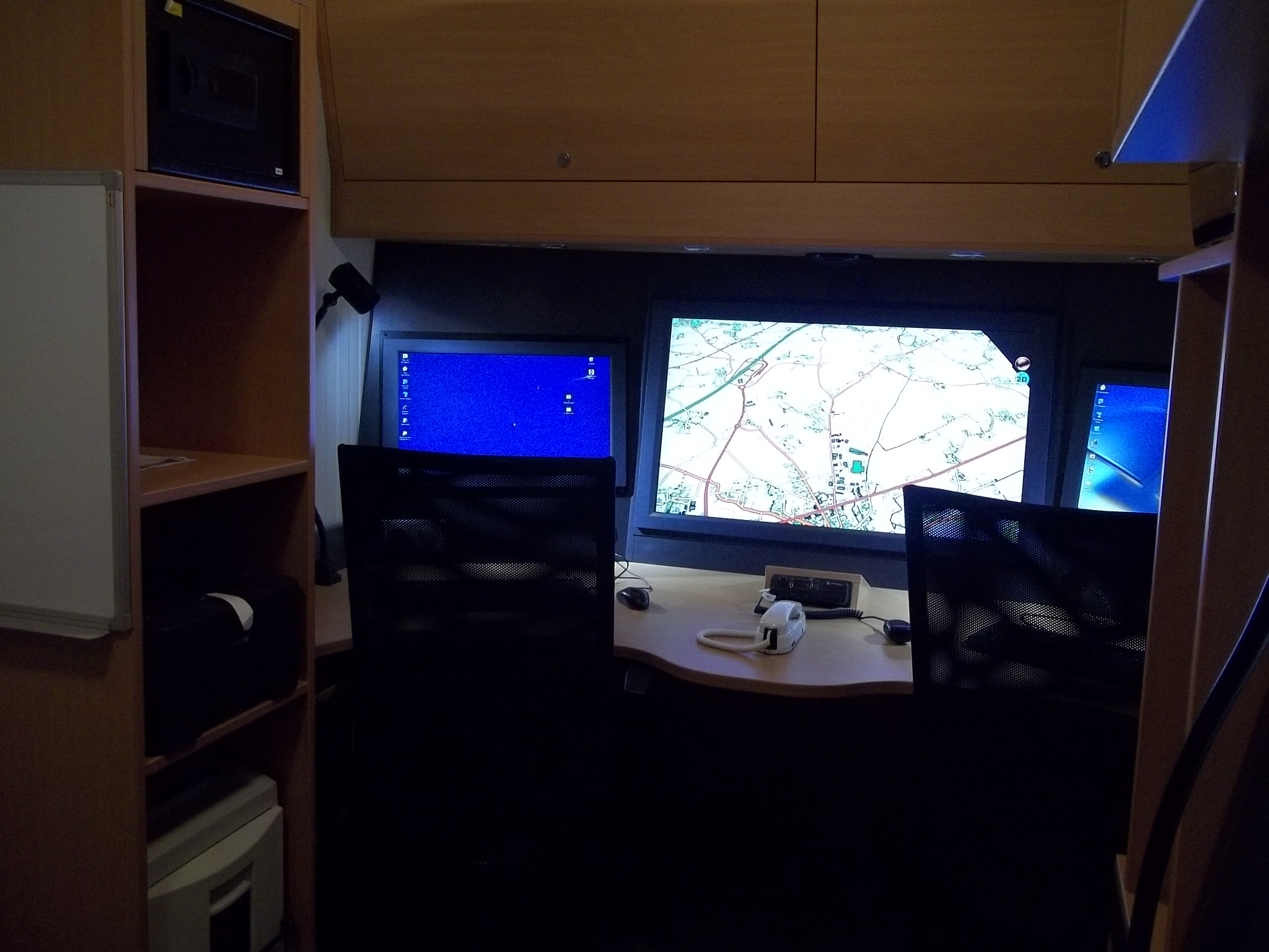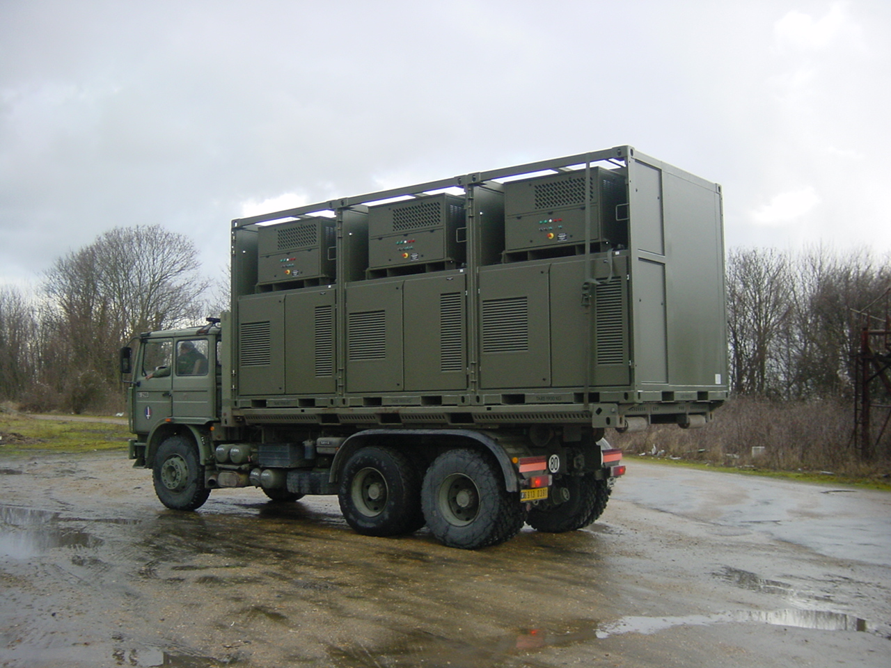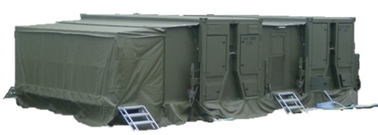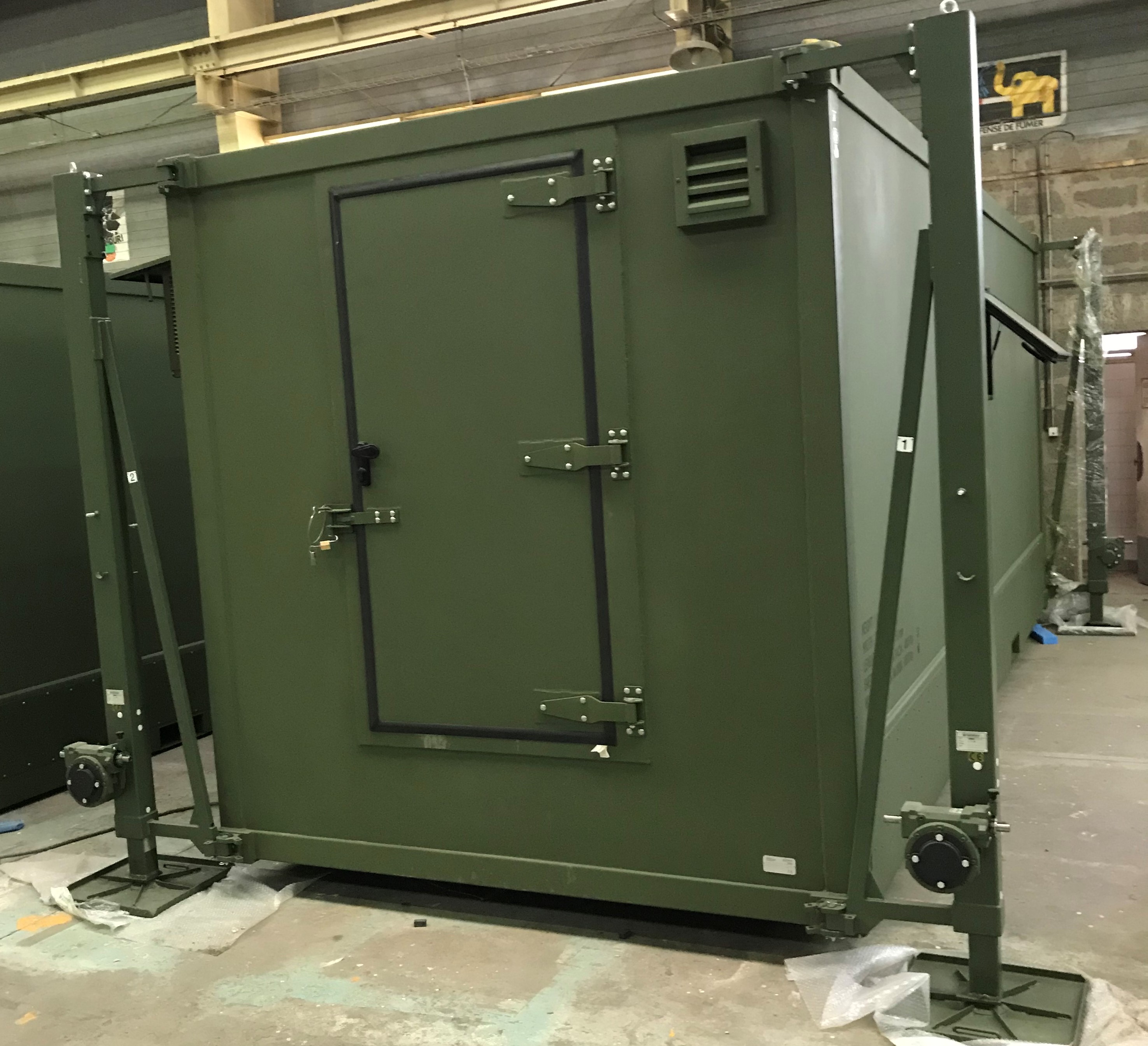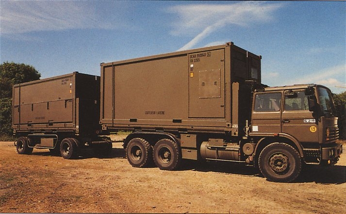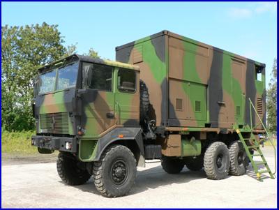 The interior volume is divided between a technical compartment, often with low EMF protection, and an operational compartment with more effective shielding. The operational compartment offers a protected space and the necessary equipment for operators to carry out their missions and electronic bays. The technical compartment houses air conditioners and various specific telecommunications equipment (antennas, masts, cable reels, etc.).