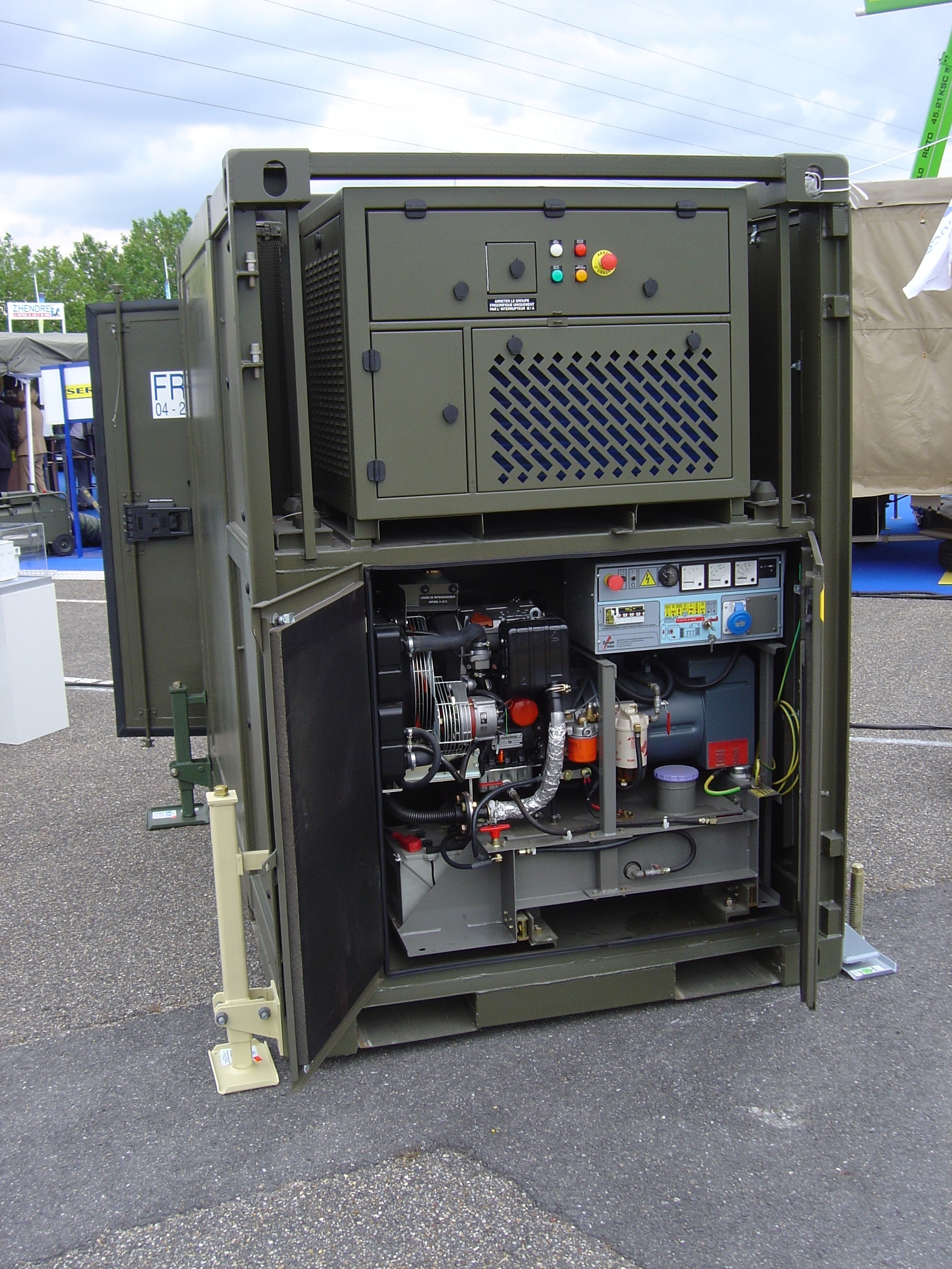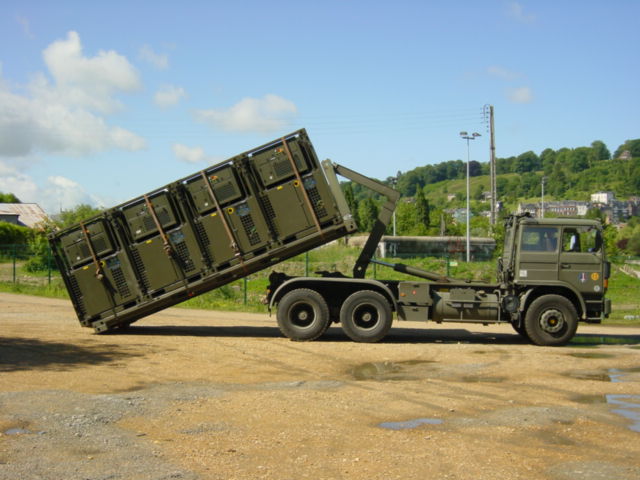 The technical compartment can house a generator, air conditioners, a compressor, as well as specific telecommunications equipment such as antennas, cable reels, telescopic masts with their deployment mechanisms.