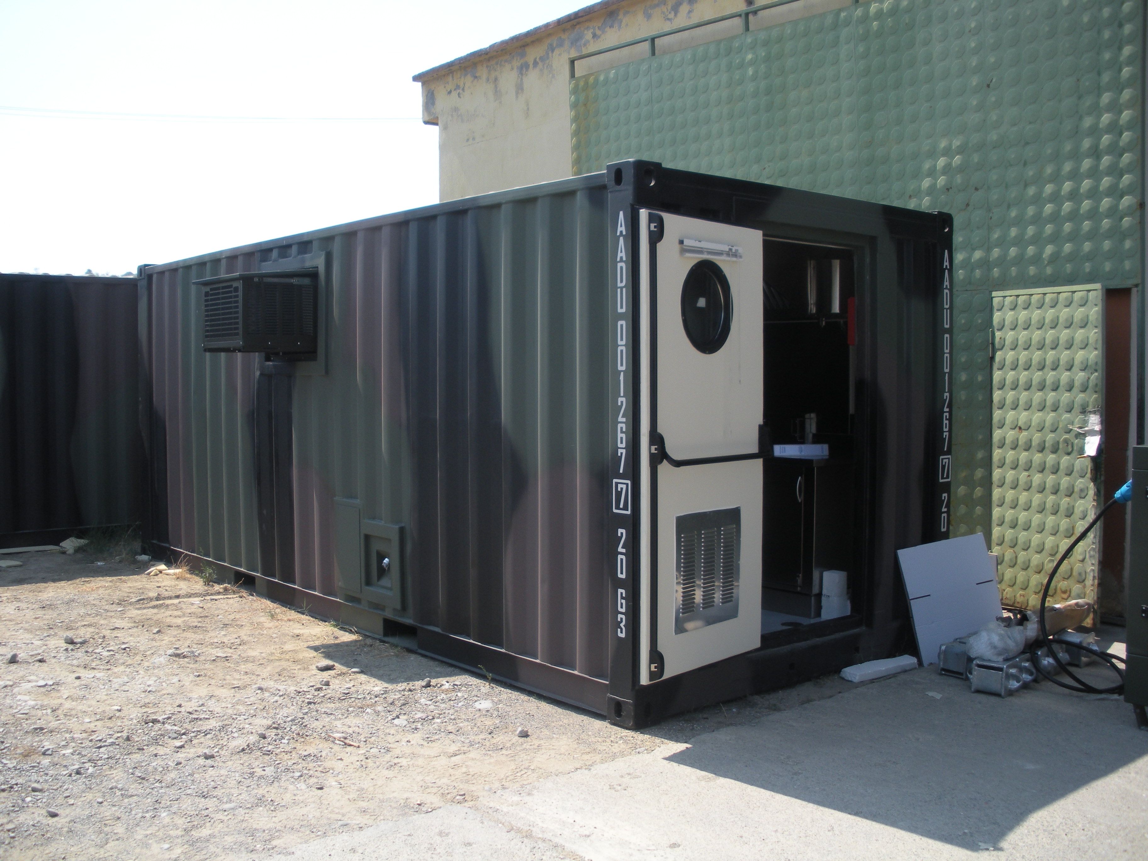 The interior space is ventilated and air-conditioned. They are installed in CSC certified ISO 20-foot 1C or 1CC type containers and are used with 1CX tank containers for drinking water or for wastewater recovery.